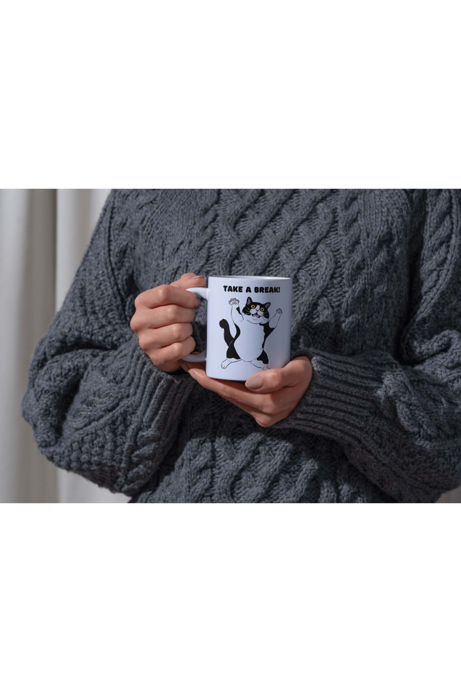 Win Ovro Premium Ultra Beyaz Porselen Kupa Bardak Çift Yönlü Baskılı - Take A Break Coffee