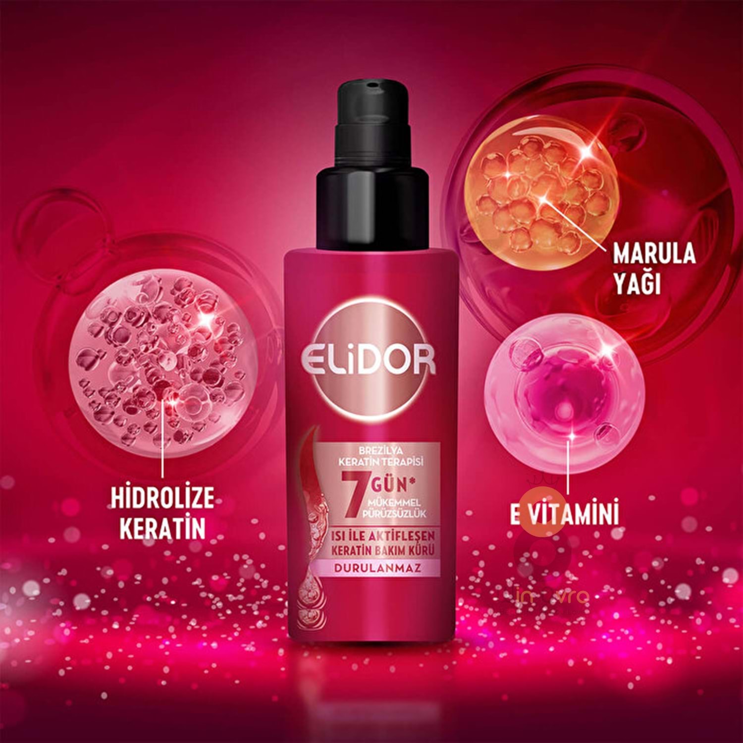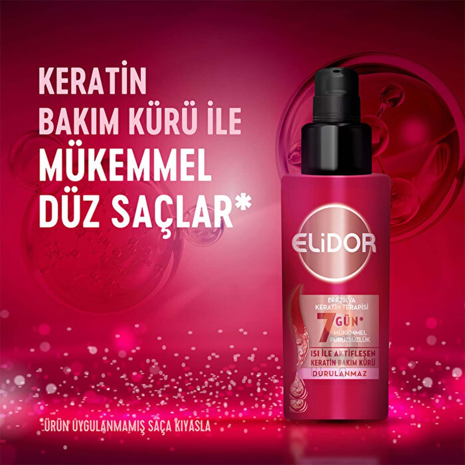 Elidor Brezilya Keratin Terapisi Bakım Kürü, saçlarını derinlemesine besleyen özel bir formülle senin için hazırlandı. İçerisinde bulunan Hidrolize Keratin, E Vitamini ve Marula Yağı, saçlarını mükemmel bir şekilde besleyerek pürüzsüz saçlara kavuşmanı sağlar. Bu zengin formül sayesinde saçlarının her bir teli, seni yansıtan sağlıklı ve güzel bir görünüm kazanır.