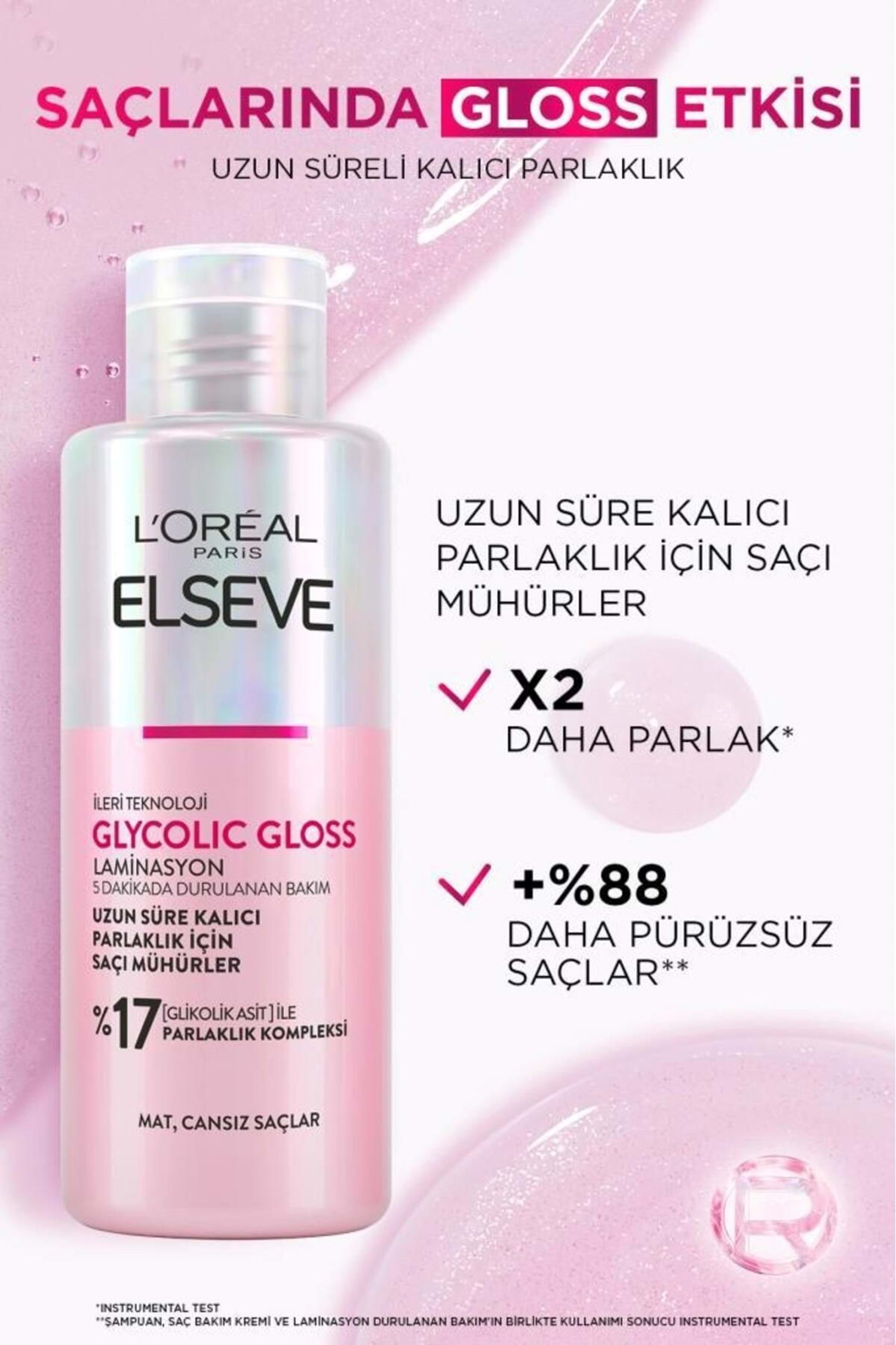 Loreal Paris Elseve Glycolic Gloss Parlaklığı Saça Mühürleyen Laminasyon 5 Dakikada Durulanan Bakım 200ml