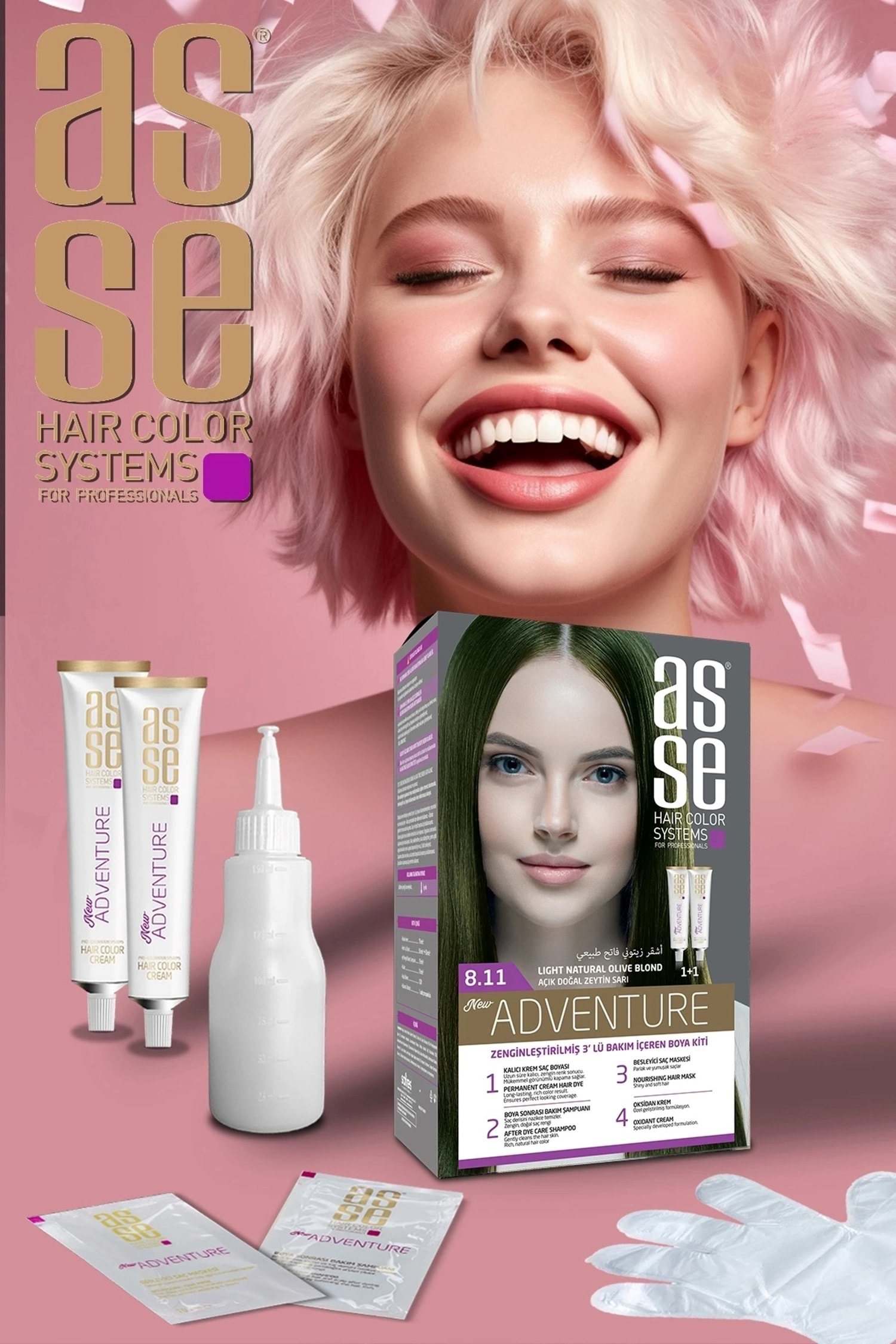 Asse Set Saç Boyası ile saçlarınıza renk katmanın keyfini çıkarın! Zengin renk seçenekleri ve özel formülü ile Asse, evde profesyonel sonuçlar elde etmenizi sağlar.