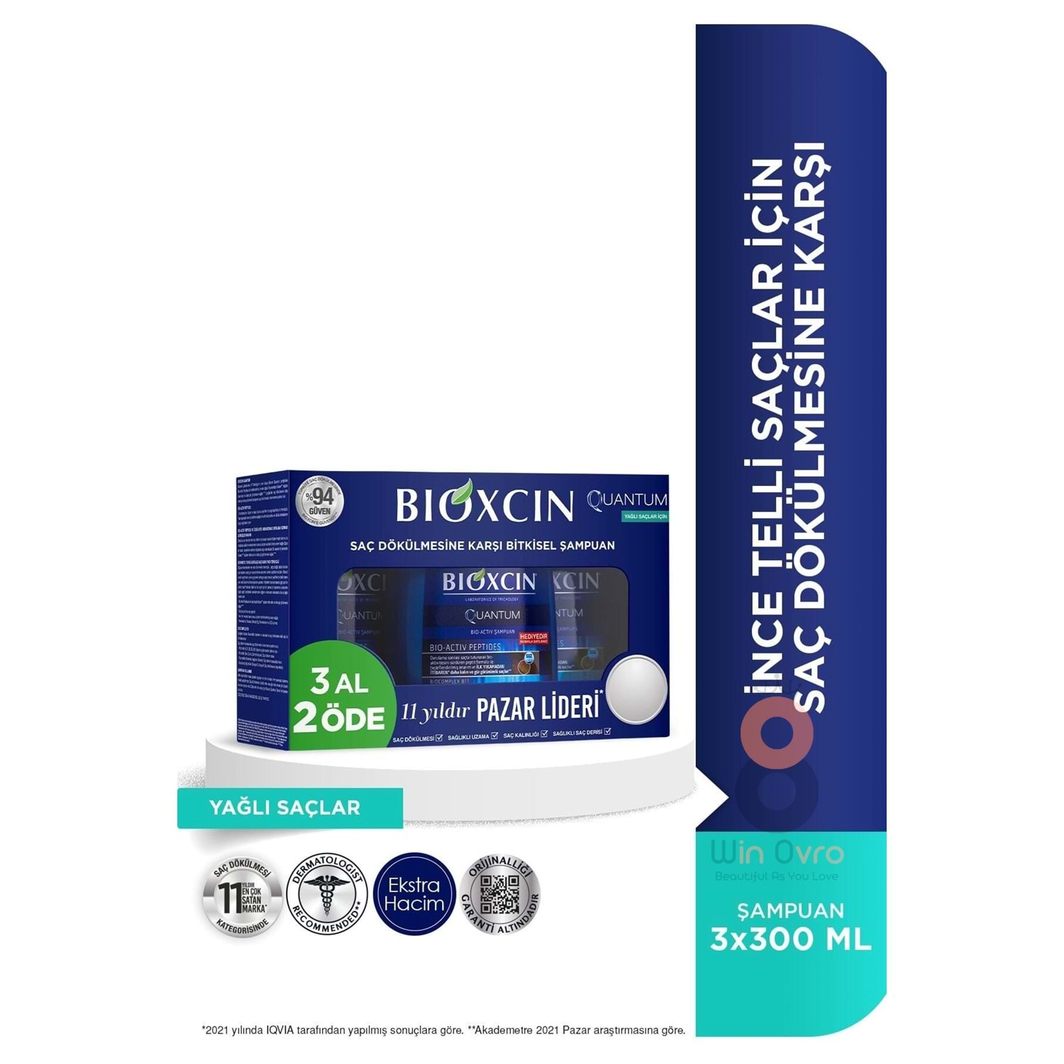 Bioxcin Quantum Şampuan 3 Al 2 Öde Yağlı Saçlar Için 3x300 Ml - Ince Telli Saçlar Için Dökülme Şampuanı