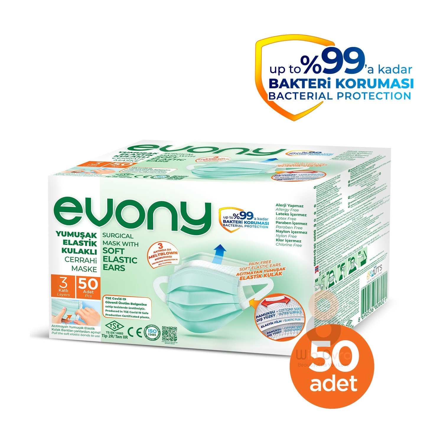 Evony Yumuşak Elastik Kulaklı Maske 50'li